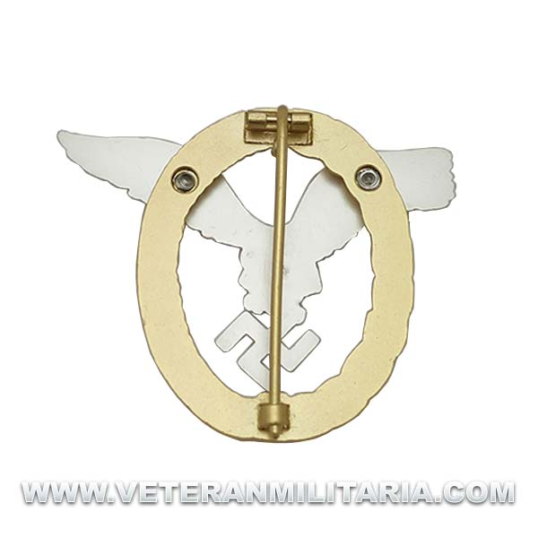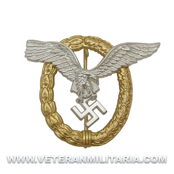 Reproduction of Luftwaffe Pilot Observers badge, made of metal alloy in two pieces with semi-matt golden crown and silver eagle.
