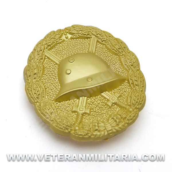 Reproduction of the gold wounded medal of the first world war, made of metal, needle closure.