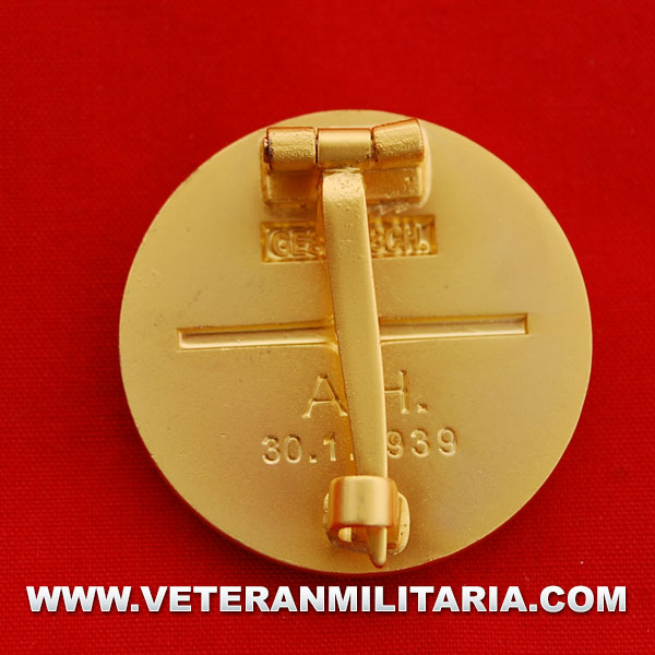 The Golden Party Badge of the N.S.D.A.P. excellent reproduction made in two pieces enamelled center on back labels