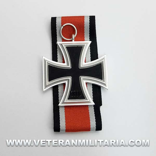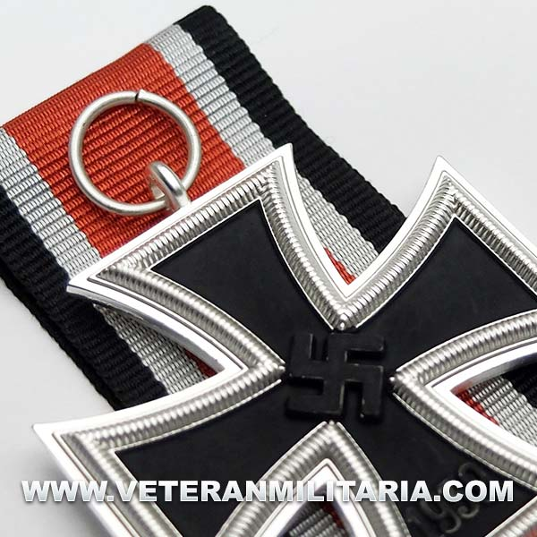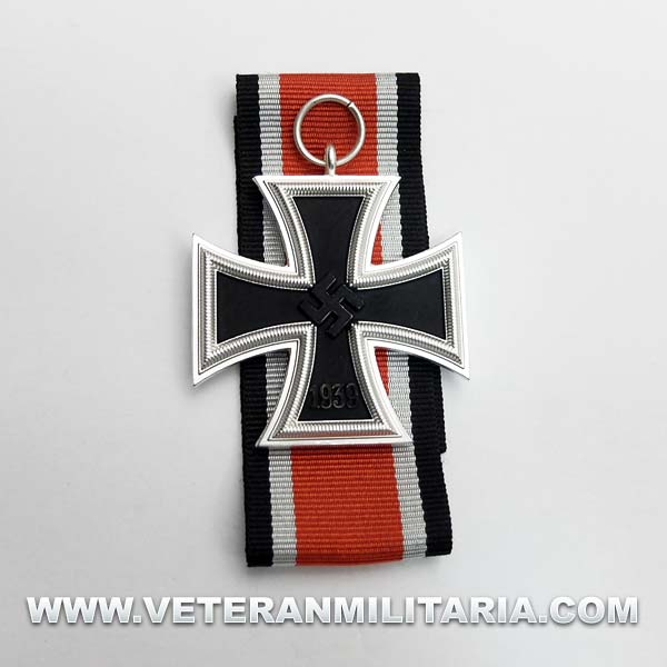 1939 Iron Cross 2nd Class. The definitive WWII German award. A nice quality die struck copy. Antique silvered finish with black painted centre. Complete with suspension ring and length of ribbon. Includes box