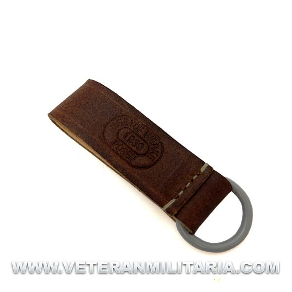 Reproduction of the ring auxiliary for belt, it is used like hook of the brushings to the belt, made in brown leather, ring of painted steel.