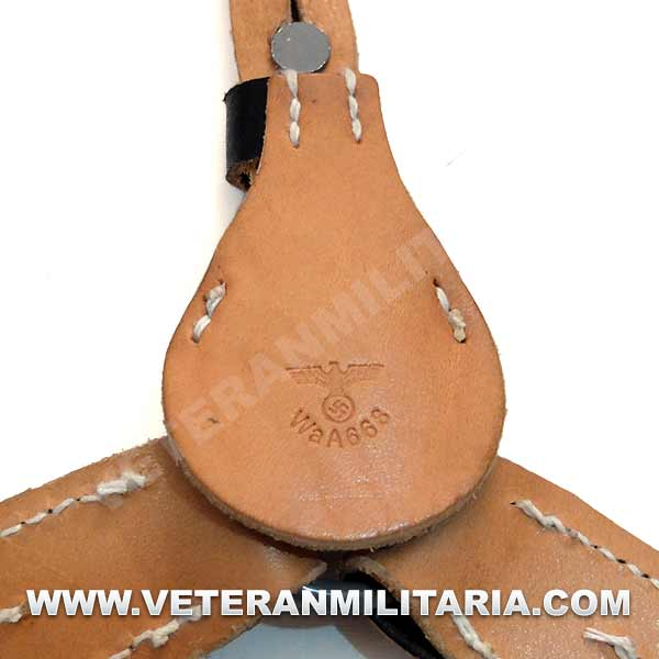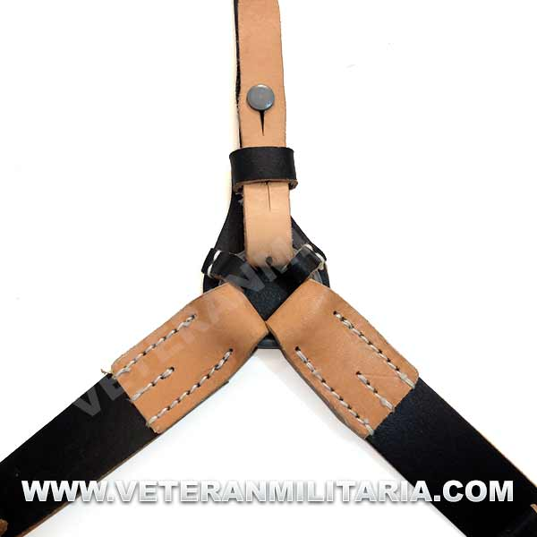 Reproduction of Y-Straps, made of leather, all painted metal parts, manufacturer's markings.