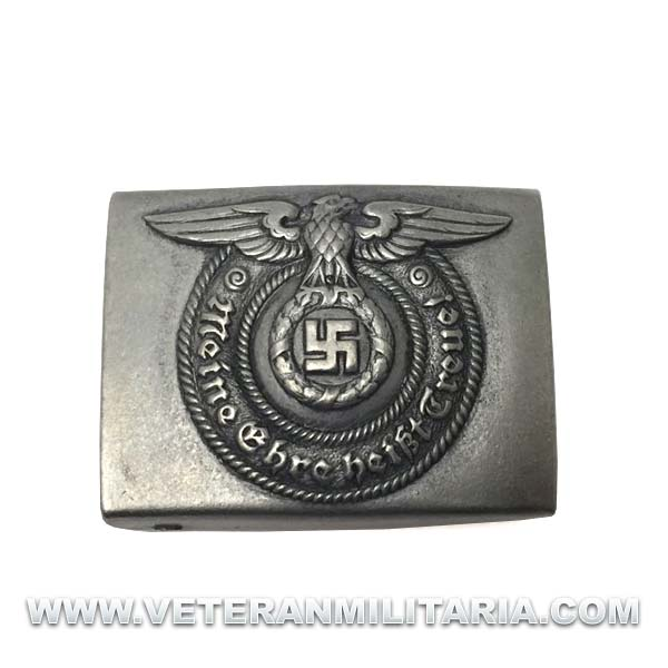 Exact reproduction of the Waffen SS buckle, made of aluminum, with markings of the manufacturer RZM