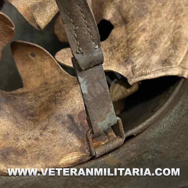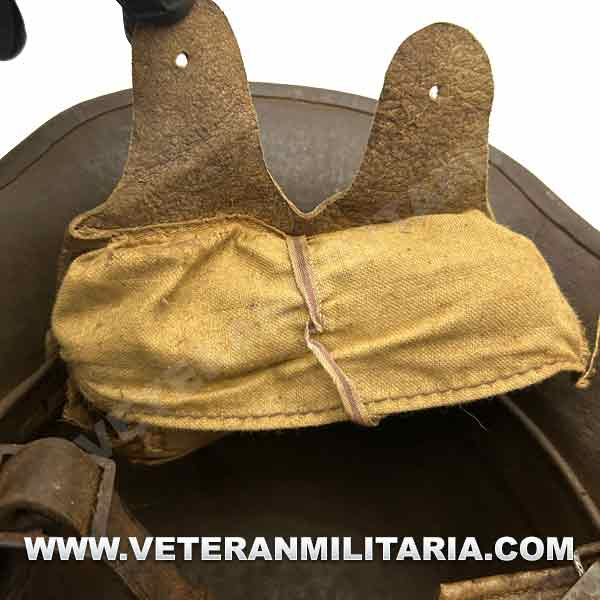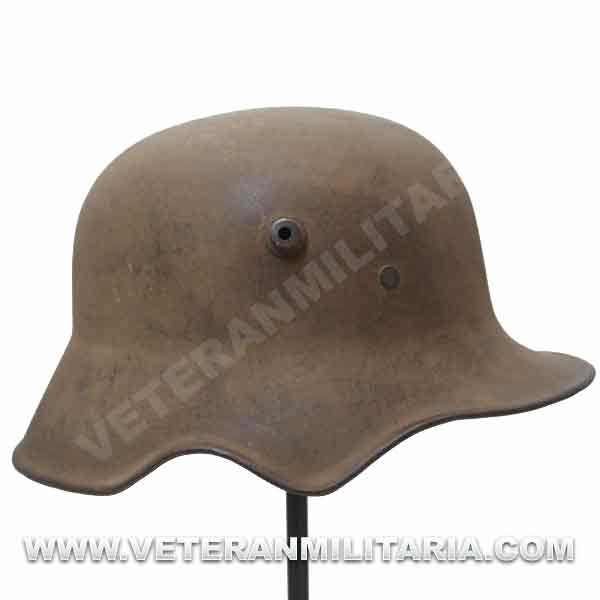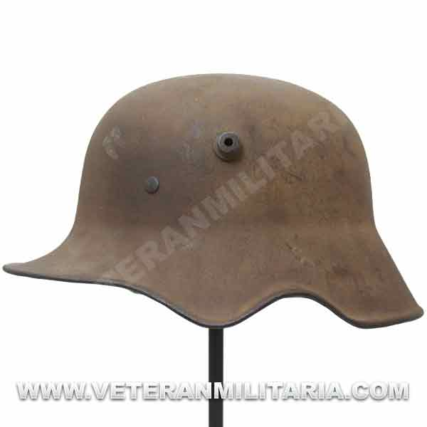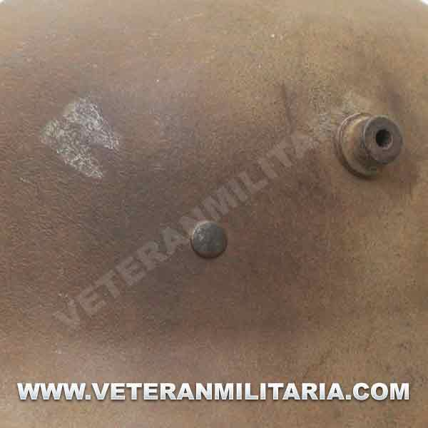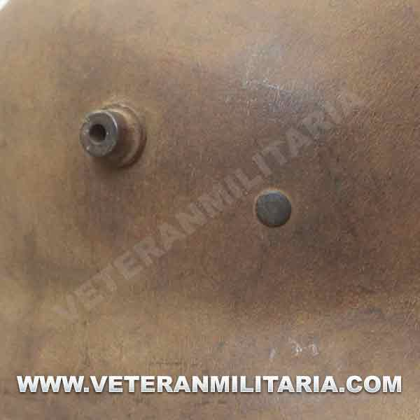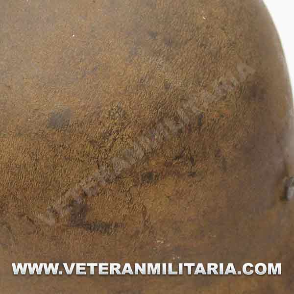 The helmet M18 (Helm mit Ohrenausschnitten) or “ear cutout helmet” was a variation of the German Model 1918. It is identical to the standard M18 but for the half-moon curved sections adjacent to the location of the wearer’s ears. The purpose of the cutouts was to improve hearing