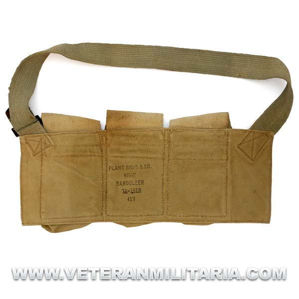 1918 Browning BAR Magazine, made of thick khaki canvas for six loaders, adjustable strap, manufacturer's markings: