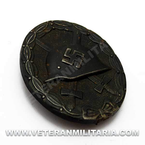 Wound Badge in Black, made of brass, it retains a lot of original paint. In reverse small spots of rust.