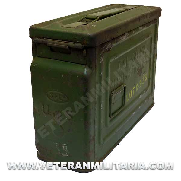 Cal.30 ammunition box, manufacturer SF Ltd. Stamped on the sides Cal .30 M2 ammunition box.