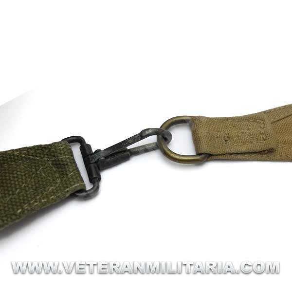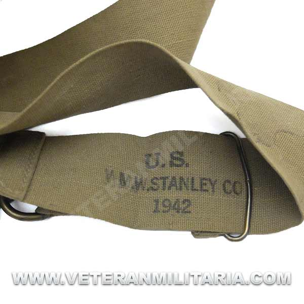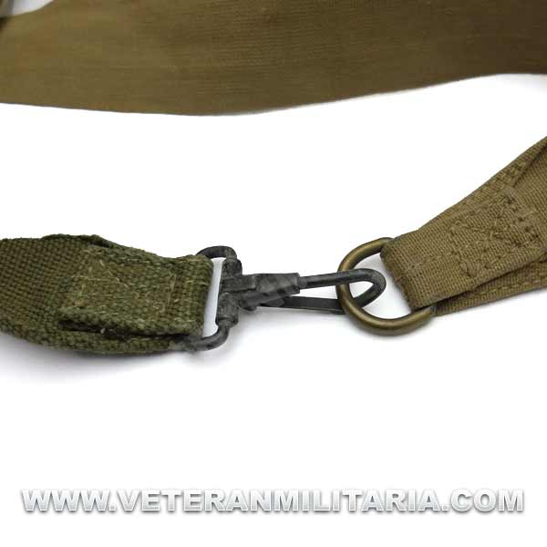 M1 ammunition bag, made of thick canvas, on the front letters US, on the inside manufacturer's markings HARIAN 1944, HQ-133, shoulder strap marked U.S. STANLEY CO 1942