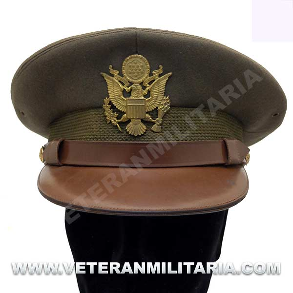 US Army Officer's visor hat color olive drab No 51, inside the card with the name of the owner Elmer F. Schultz Lieutenant Signal Corps and manufacturer markings, it has a small stain on the outside of the cap.