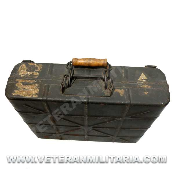 German box or suitcase for transporting M24 grenades (Stielhandgranate 24), made of sheet steel, retains a lot of original paint, on one side small spots of rust, markings.