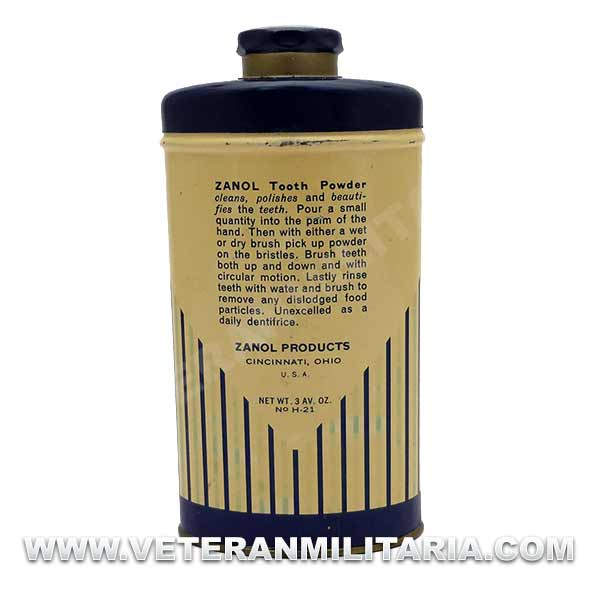 American Zanol powdered toothpaste, this type of toothpaste was used by soldiers in WWII.