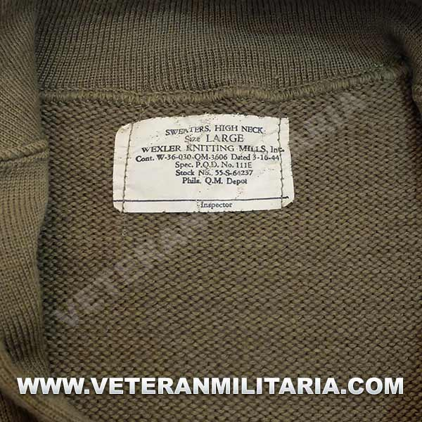Original U.S "High neck" sweater, very good general condition, label made in 1944, large size.