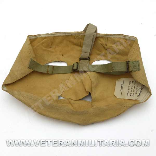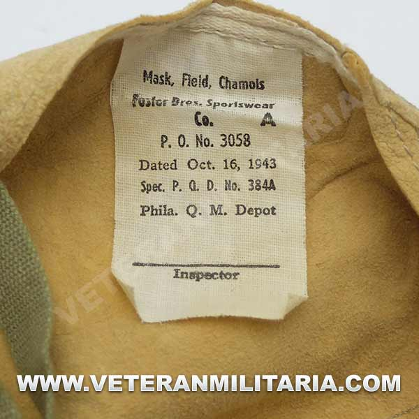 Cold weather leather face masks, It is made of fine and soft leather, adjustable elastic straps, QM label with manufacturer's name and date 1943.