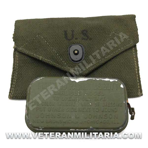 First aid bag with first aid kit, on reverse manufacturer's markings and date 1944, color OD