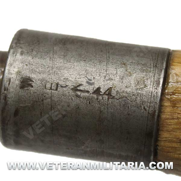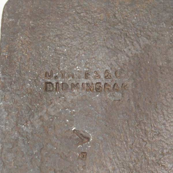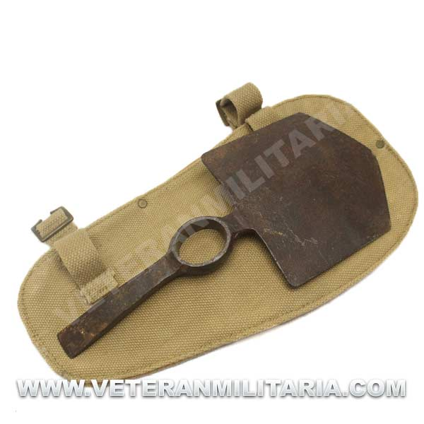 Entrenching tool, carrying case with markings M.E.C 1943, wooden handle with 1944 markings and the pickaxe with markings J. Yates & Co. Birmingham