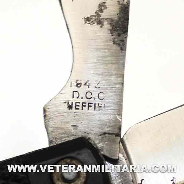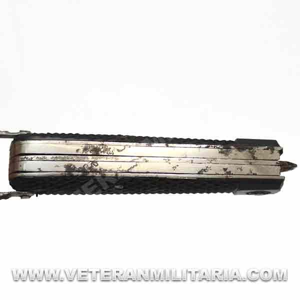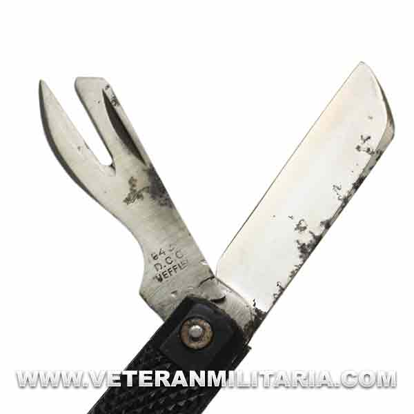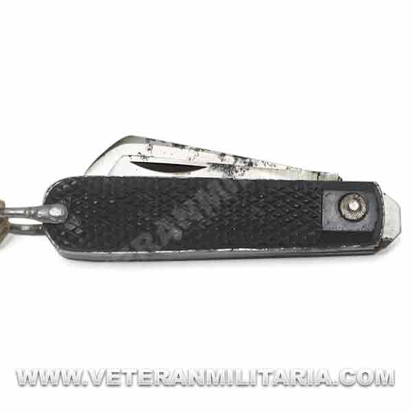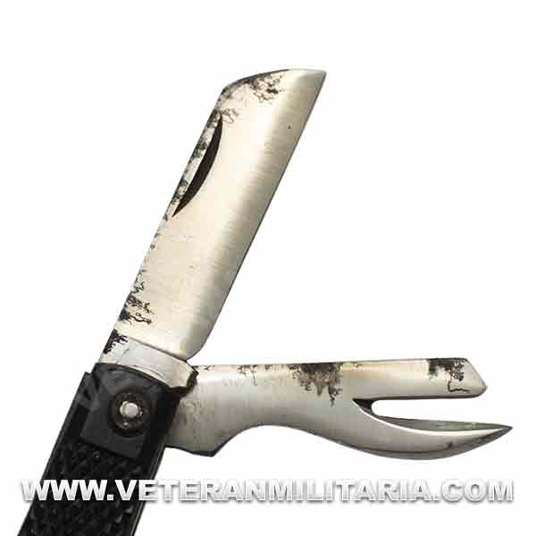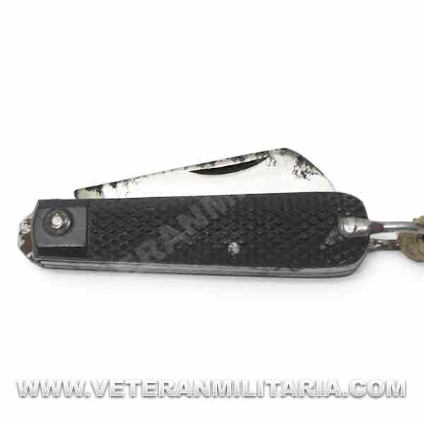 British Army knife, the blade is in good condition, the checkered bakelite handle, the can opener is in good condition and has the manufacturer's name, year and arrow 1943 stamped on it, orginal with Cord.