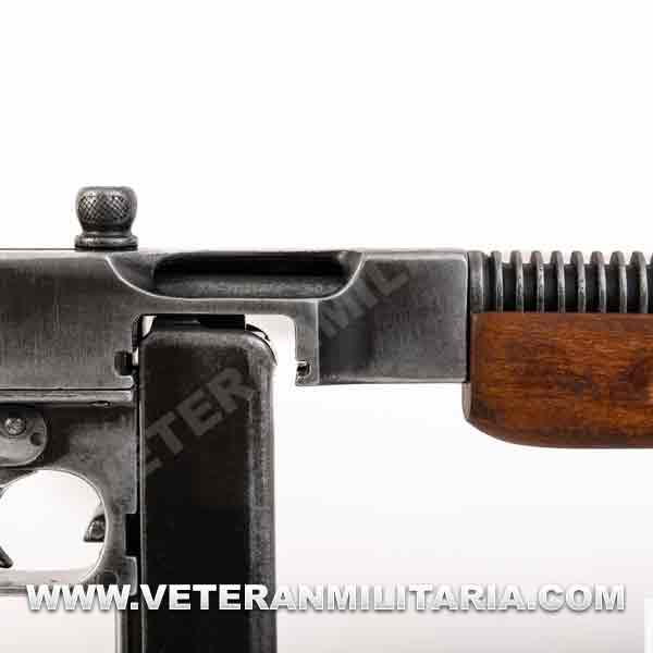 A life-size replica of the Thompson M1 used by the United States Army. It simulates cocking and firing, but does not fire. The metal parts on this version are weathered. It does not come with a sling. Made of metal and wood by Denix.