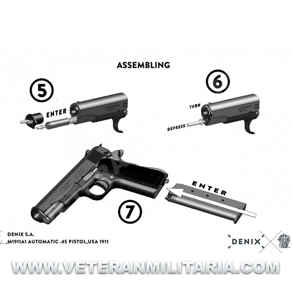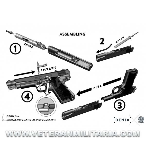 This black finished M1911 .45 Caliber Government Automatic Pistol non firing model is a replica of the standard government issue sidearm of the U.S. soldier since 1911 and made famous in historical pictures of World War II. Replica has machanical and moving parts, but cannot be made to fire. Full Metal.