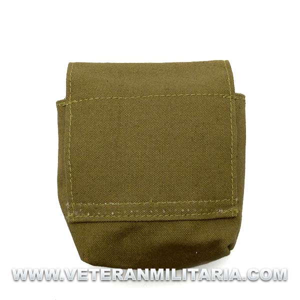 Reproduction of ammunition bag, made of khaki canvas, clip-on closure.