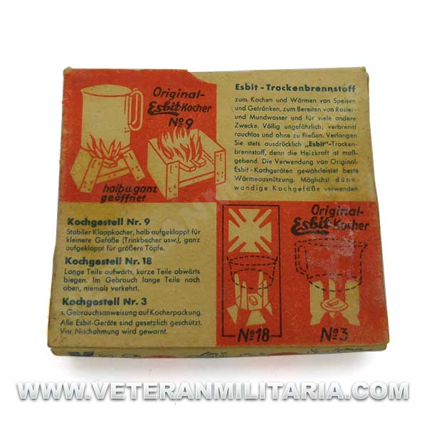 Box with Esbit solid alcohol tablets. It is kept in very good condition, it contains 6 tablet.