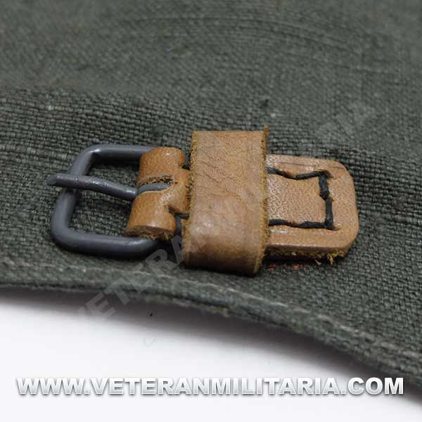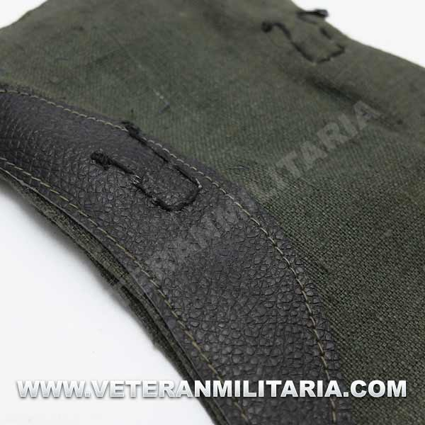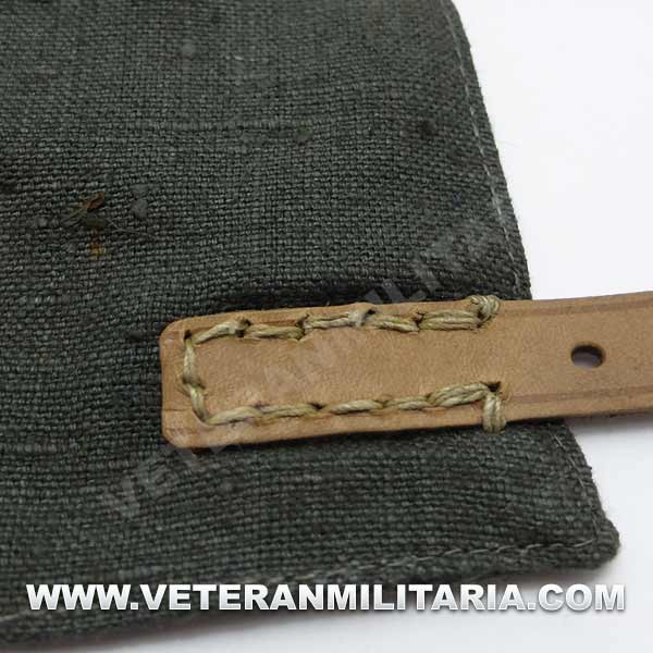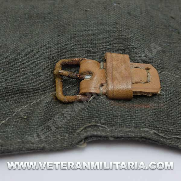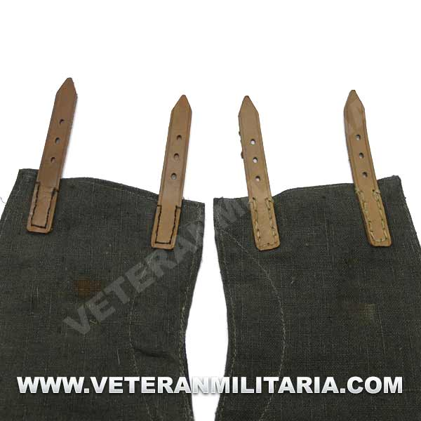 German gaiters, made of greenish canvas, brown leather straps, buckles with small rust spots, with markings