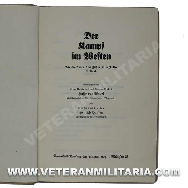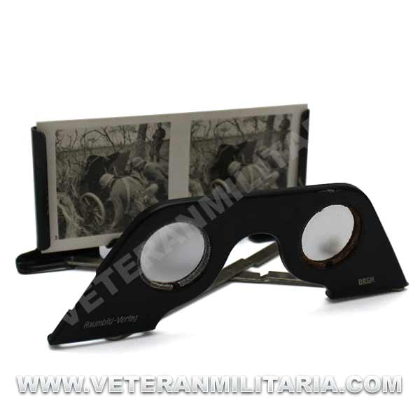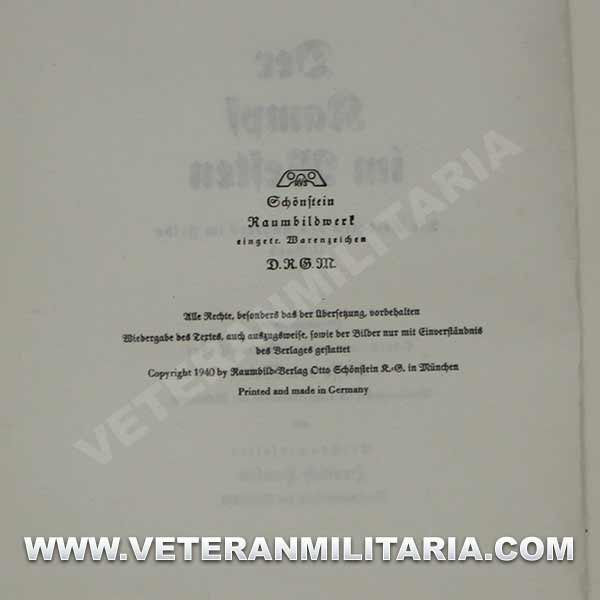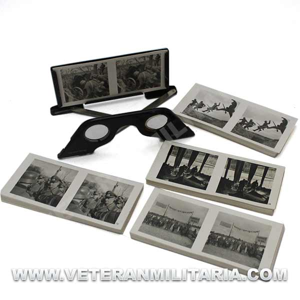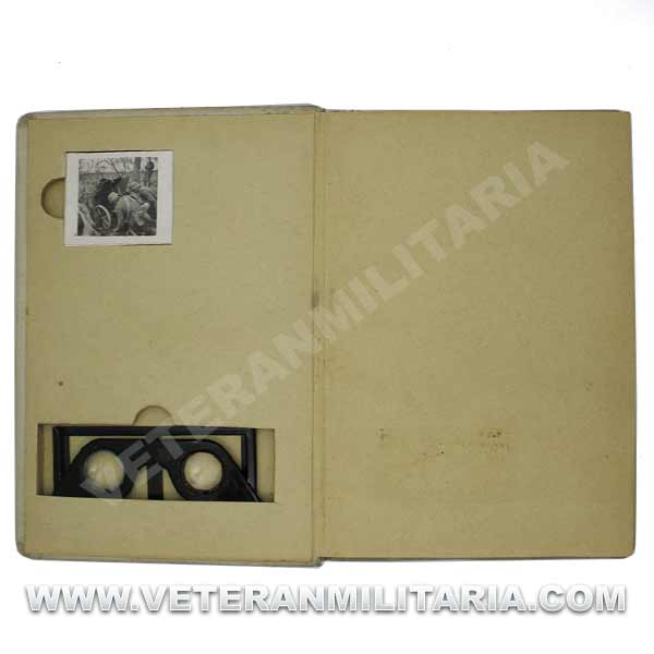 Stereoscopic photo album Der Kampf im Westen. Includes, hard cover album, 80 pages with 8 reproductions of color photographs, stereoscopic glasses, 100 stereoscopic photographs. Edition of 1940