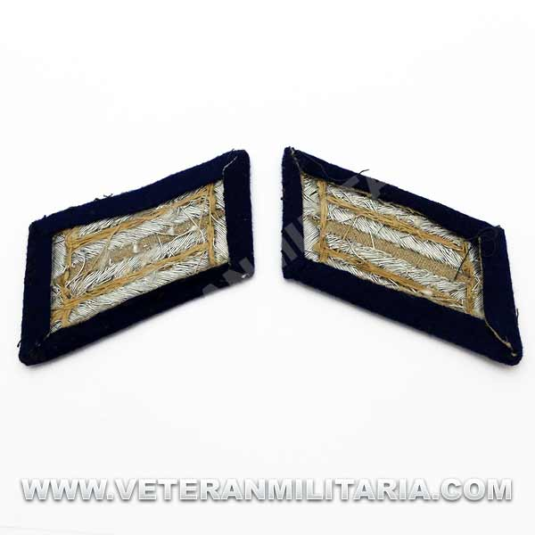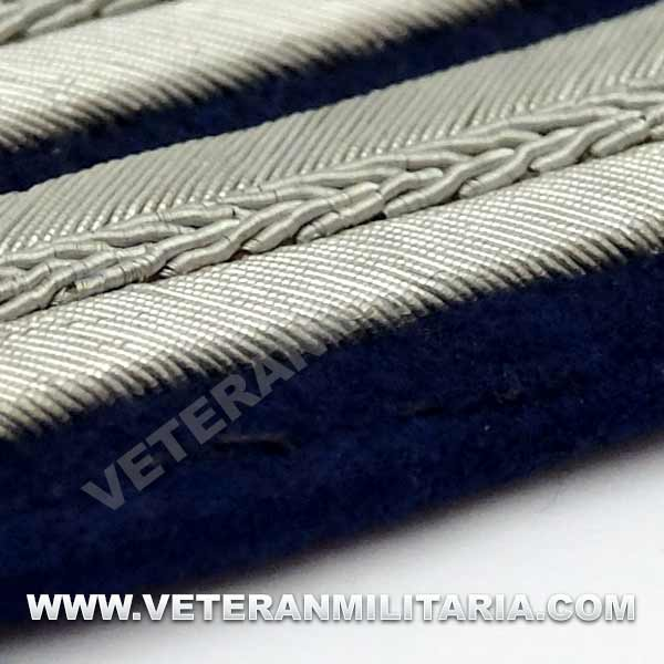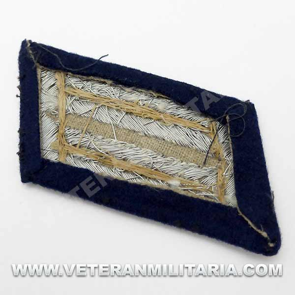 Medical officer's collar tabs, the silver embroidery, made on a soft dark azul wool background.