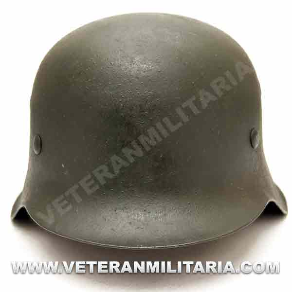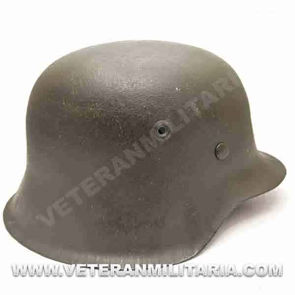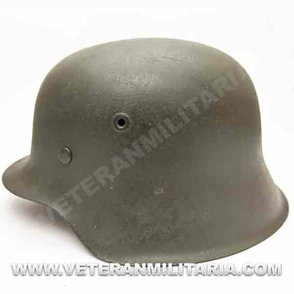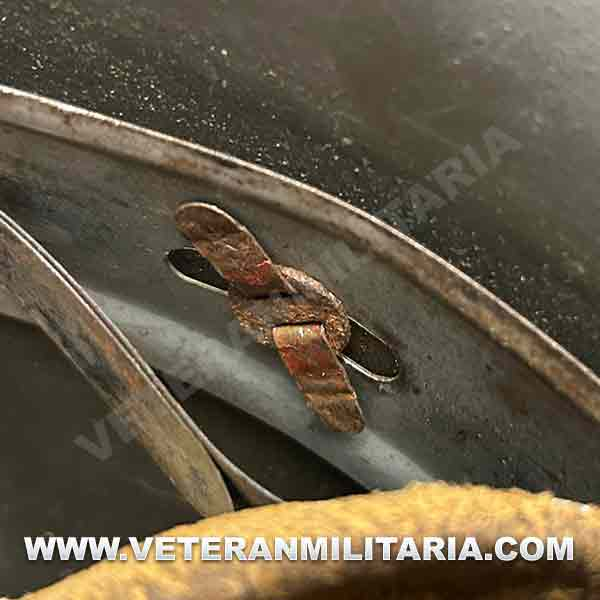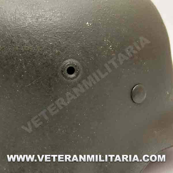 The helmet bears a "qvl" manufacturer code, believed to be from a factory in occupied Czechoslovakia (possibly Brno), active from around 1944. The exact maker remains unidentified, but these helmets are thought to be associated with the Thale facility, using its steel stock and stamping dies, "qvl" examples are found in the low 5000–6000 lot number range (mirroring Thales Lot numbers at the same time)