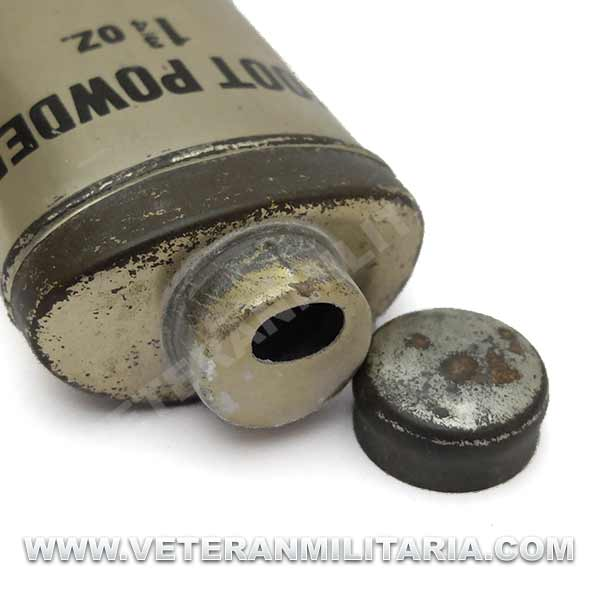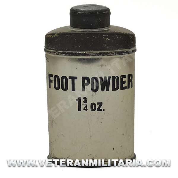 Can of Foot Powder talc, cake powder. It was used to keep your feet dry and prevent infection. Contains 1 3/4 oz of talc that is still in the can.