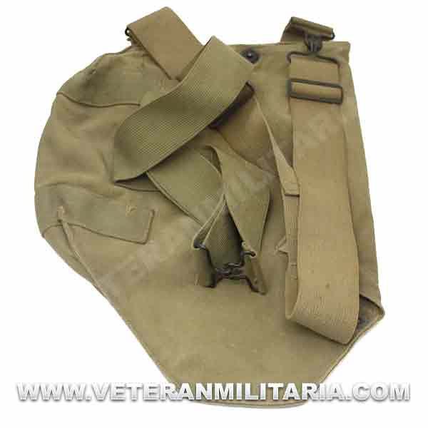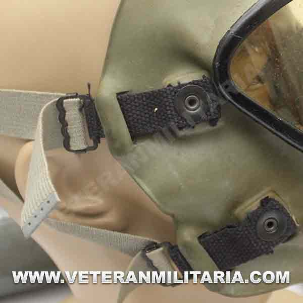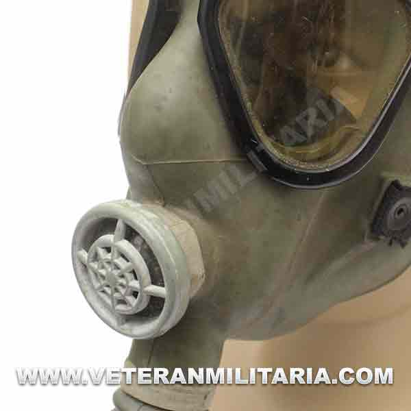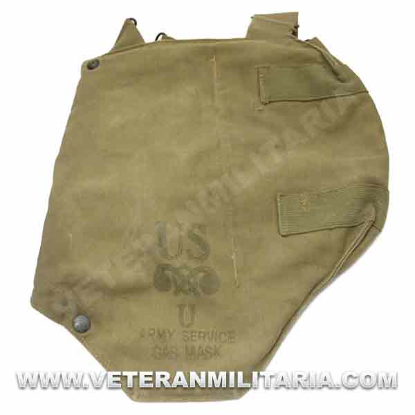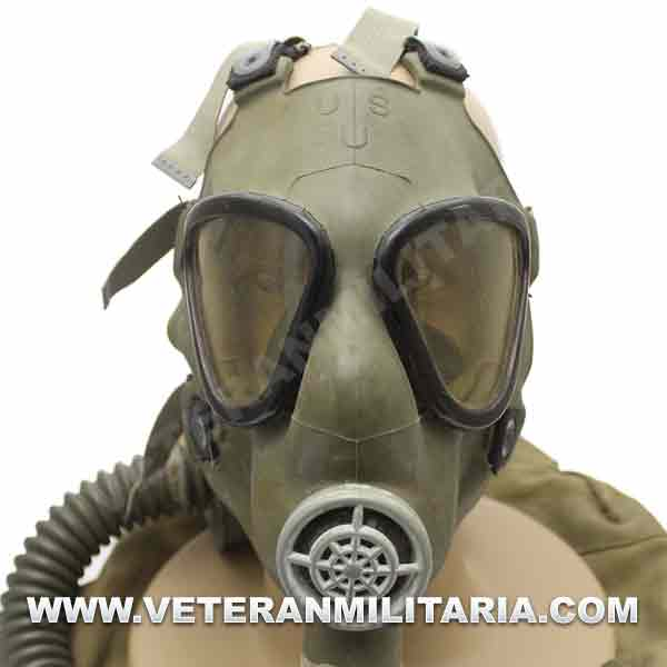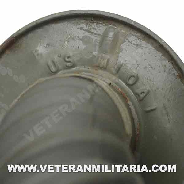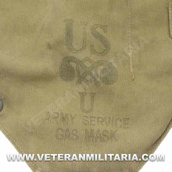 US Army M3 gas mask. The mask has manufacturer's markings and is dated 1941. It is connected via tubing to an M10 filter. The M1VA1 bag is in perfect condition with markings "Army Lightweight Service Mask". Includes waterproofing kit.