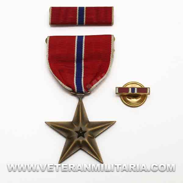 United States Army Bronze Star Medal, includes medal ribon and lapel pin. Pin closure.