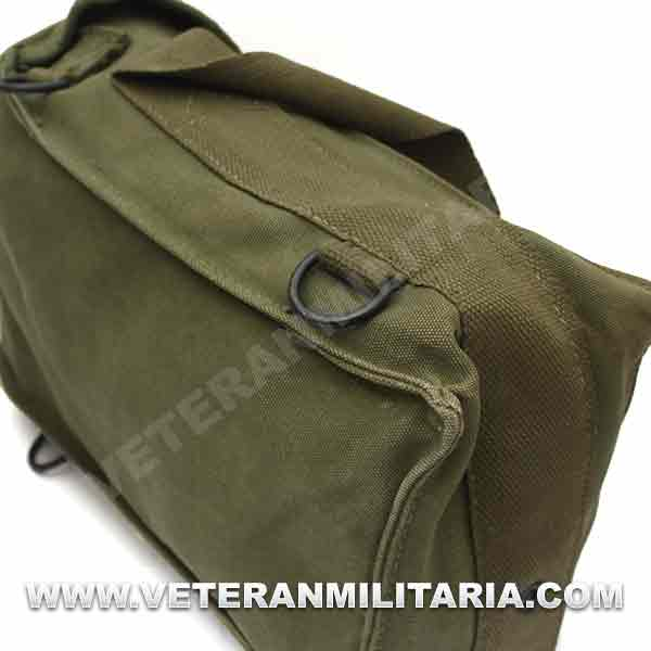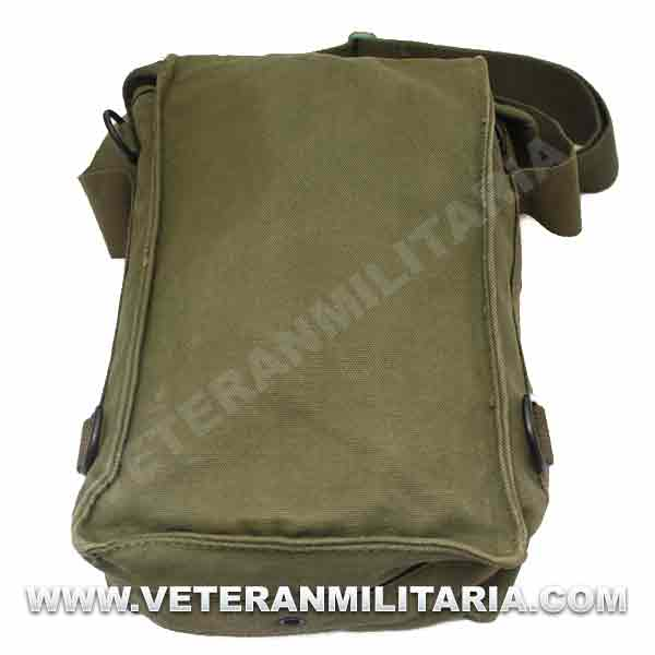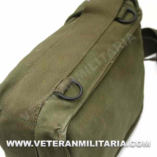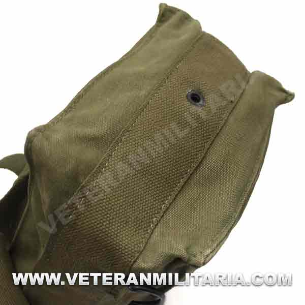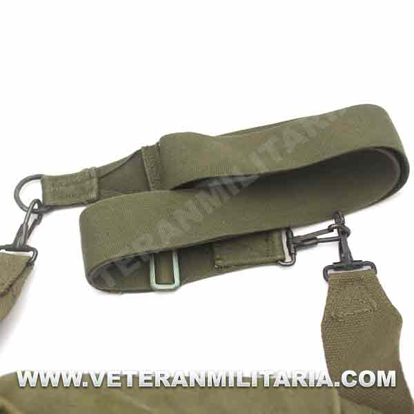 M1 ammunition bag, Made of heavy canvas, with the letters US on the front and the manufacturer's markings "MORROW – DOUGLAS 1945" on the inside. The shoulder strap is post-war.
