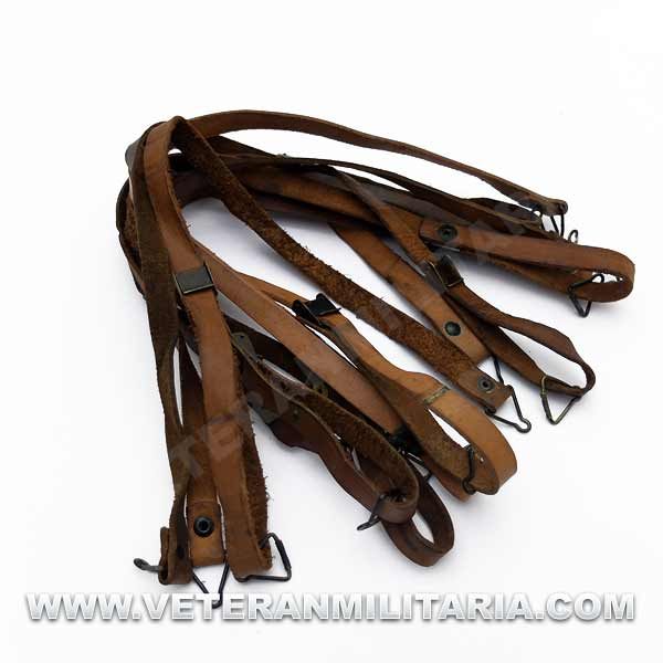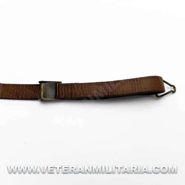 Barboquejo de cuero para sotocasco M1 original de posguerra de años 50, fabricada en cuero maron. Fabricación Belga