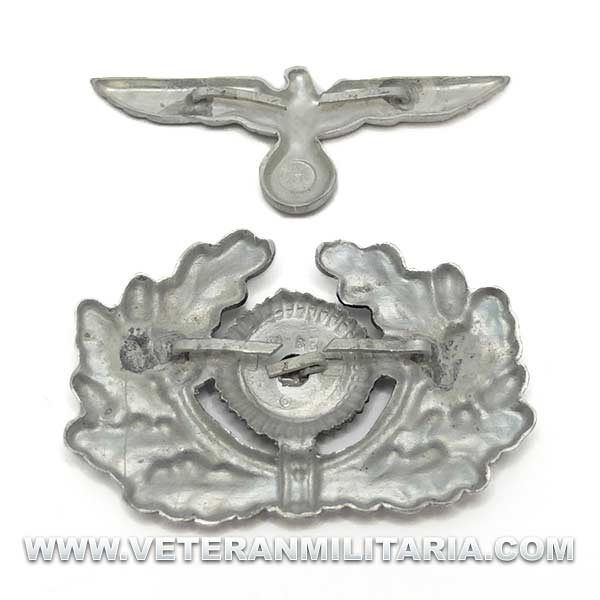 Juego de insignias para la gorra Wehrmacht, fabricado en aluminio, ligeramente envejecido.