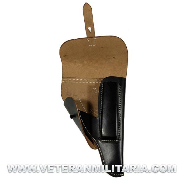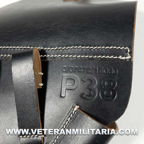 Pistolera para Walther P38 versión blanda. Fabricada en piel de color negro, marcas de fabricante en su reverso.