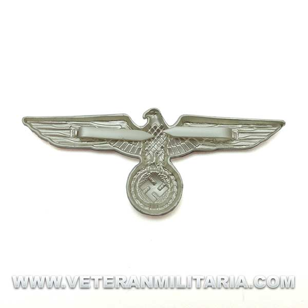 Águila para gorra de plato para gorras de la Wehrmacht . Fabricada en metal de color plateado.