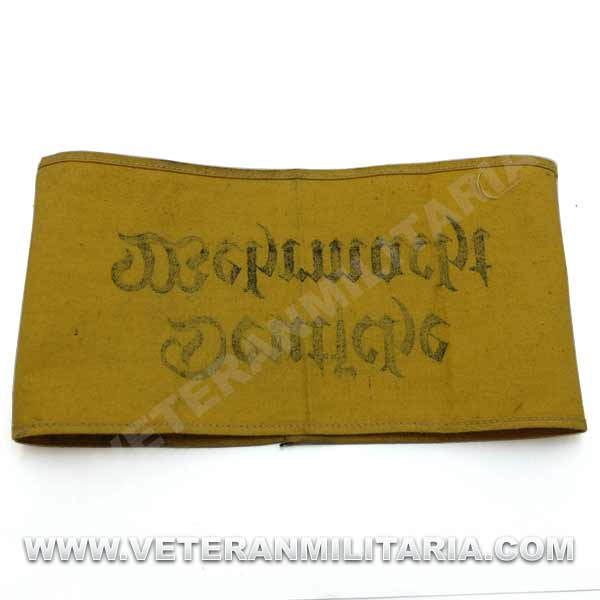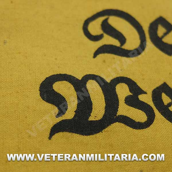 Brazalete de Deutsche Wehrmacht con patrón impreso, fabricado en tela de algodón de color amarillo con las letras impresas de color negro.