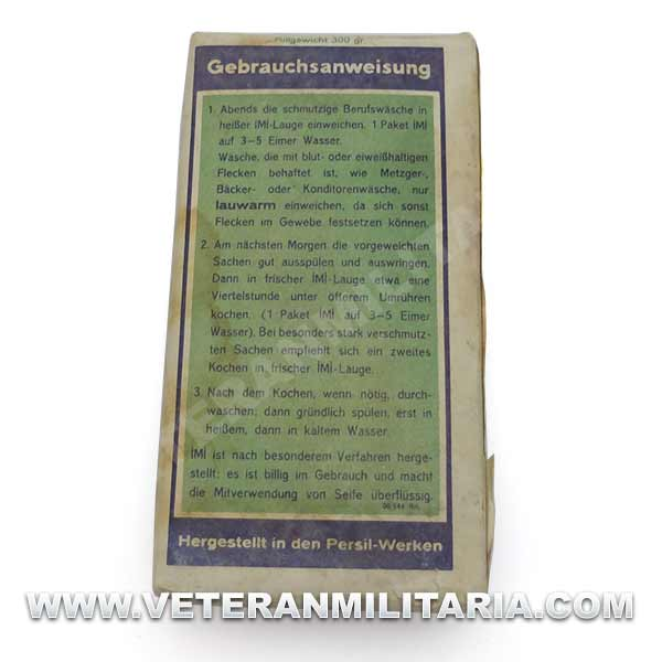 Jabón en polvo de la marca IMI Henkel & Cie. A.- G. Düsseldorf, es un articulo civil utilizado por el ejército alemán (Wehrmacht) en la segunda guerra mundial.