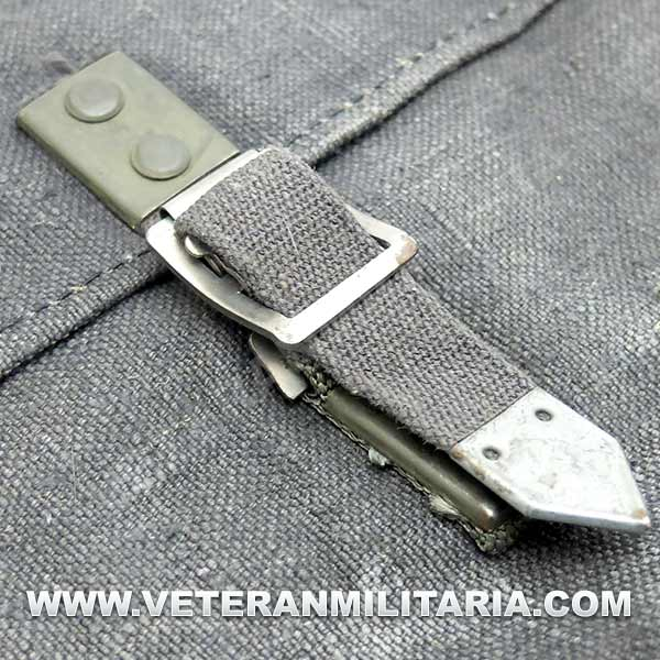 Bolsa de transporte de granadas de rifle K98, fabricado de lona resistente, unidas por entre si por una correa, herrajes metálicos fabricados por LUX, en la solapa marcajes de fabricante bdq 1942 (Ehrhardt und Kirsten Leipzig)