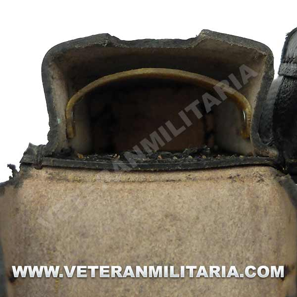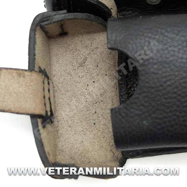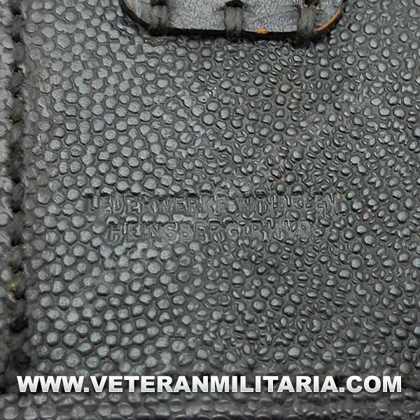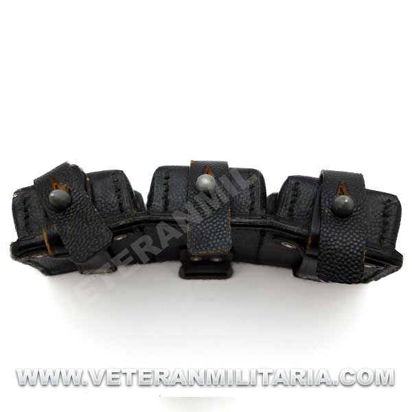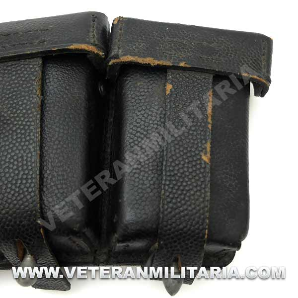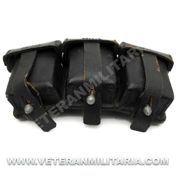 Port cargador para Mauser Kar98, fabricado en cuero negro granulado con tres compartimentos, en la parte trasera marcajes LEDERWERKE WINDELEN, HEINSBERG/ RHLD