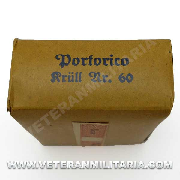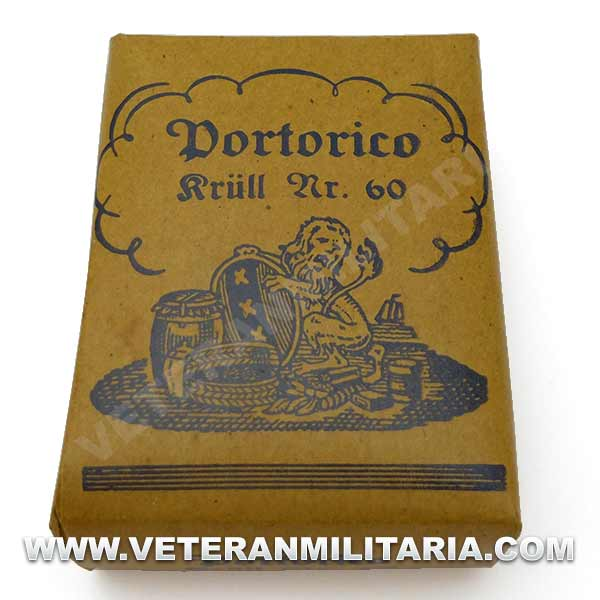 Paquete de tabaco alemán Portorico original, contiene 50 gr de tabaco, estado general muy bueno, conserva todos los marcajes como banda con águila y esvástica.