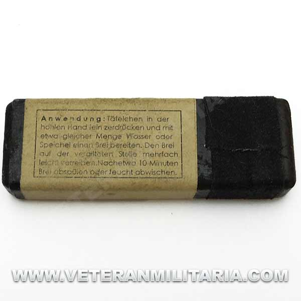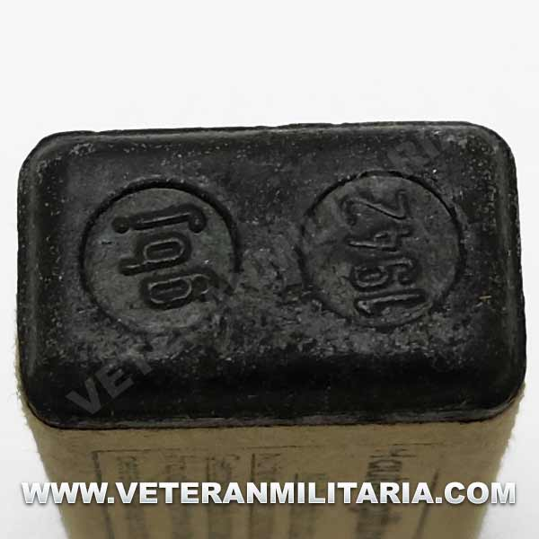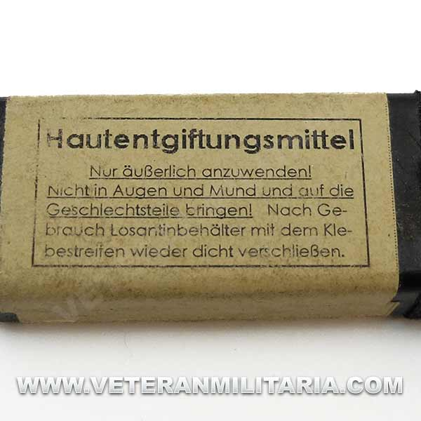Estuche de baquelita con 10 pastillas LOSANTIN, producto químico similar a la lejia, que disuelto en agua se utilizaría para la descontaminación personal.