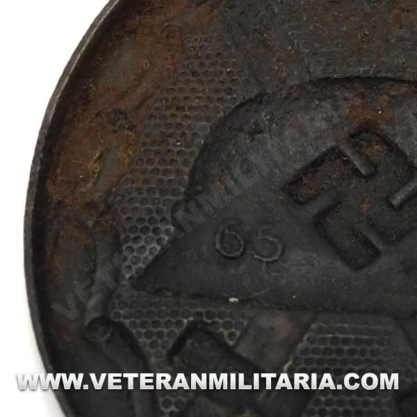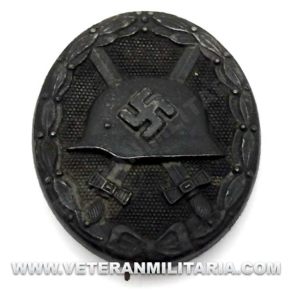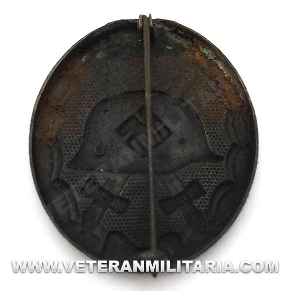Distintivo de herido en negro, fabricada en latón, conserva mucha pintura original. Muy bien marcado "65" que indica la producción de Klein u. Quenzer. En reverse pequeñas manchas de oxido.