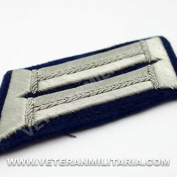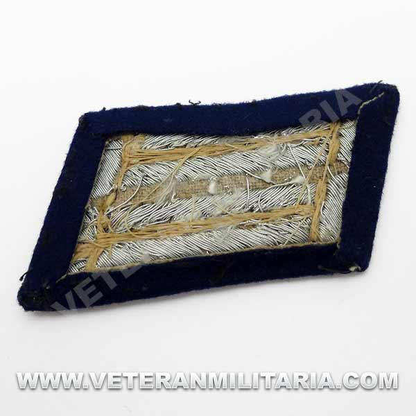 Parches de cuello de oficial médico, el bordado plateado, realizado sobre un fondo de lana suave de color azul oscuro.