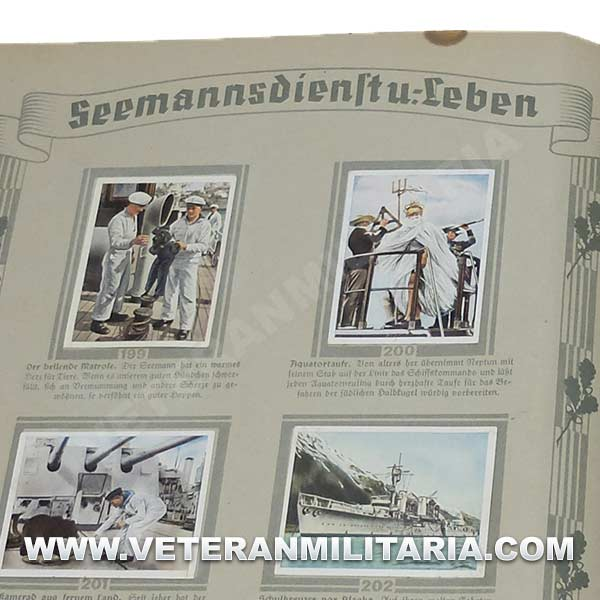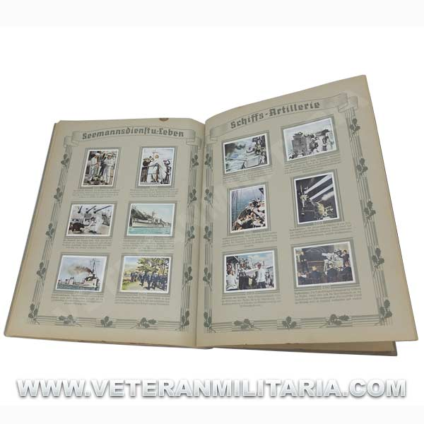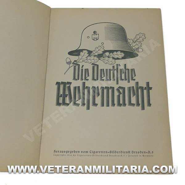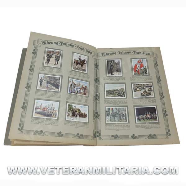 Álbum de cromos "Die Deutsche Wehrmacht", álbum completo con 270 cromos, dividido en tres ramas, Heer, Kriegsmarine y Luftwaffe, portada en relieve.