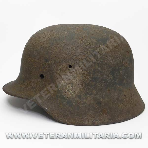 Olla de casco modelo M40 de excavación, restos visibles de calca WH, la olla proviene de la antigua URSS de la ciudad de Leningrado.