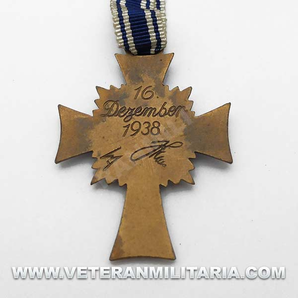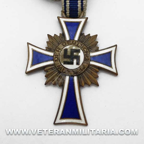 La cruz de honor de la madre alemana de bronce 3.ª clase (Ehrenkreuz der Deutschen Mutter), la cruz viene con cinta.