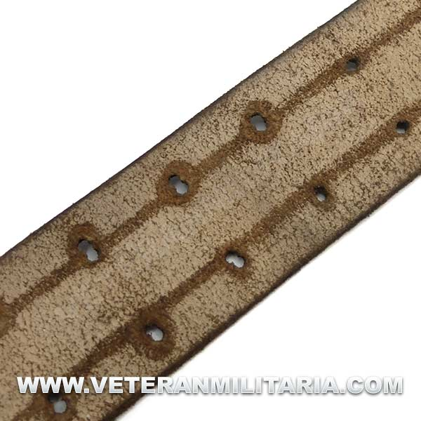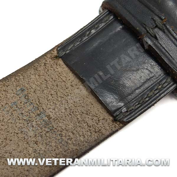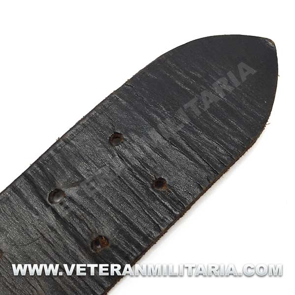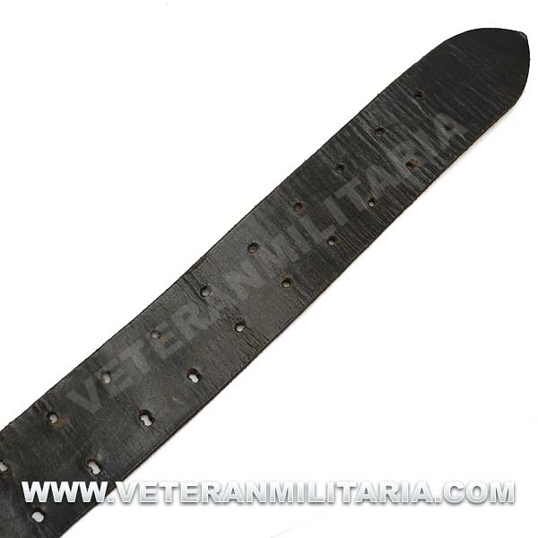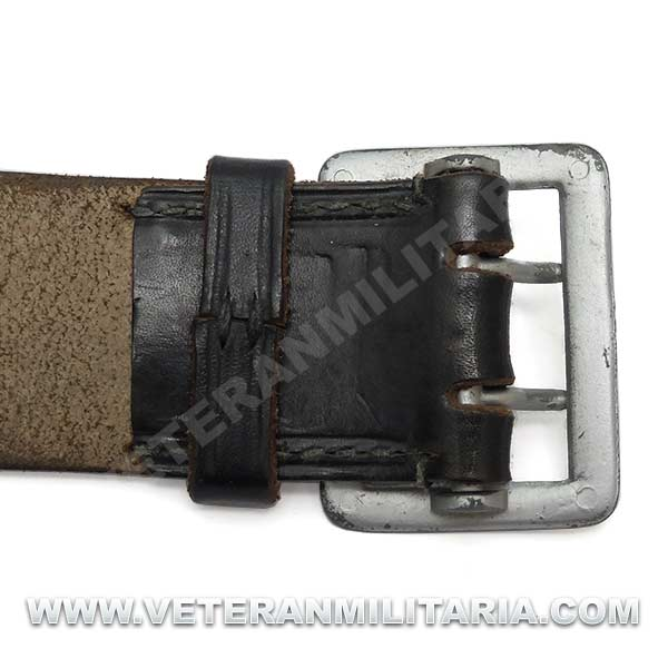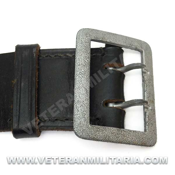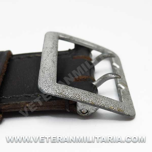Cinturón de oficial del Heer de finales de guerra, fabricado en cuero ennegrecido, la hebilla de metal conserva todo su acabado plateado de fábrica, tiene una trabilla adicional, sin marcajes, la talla no legible. El cuero en muy buenas condiciones.