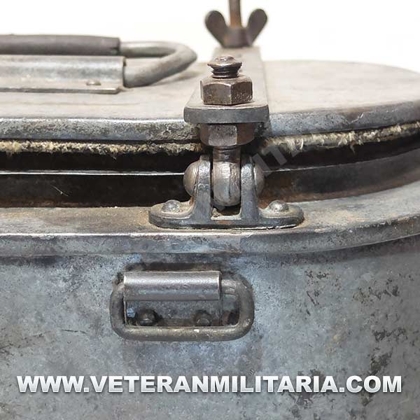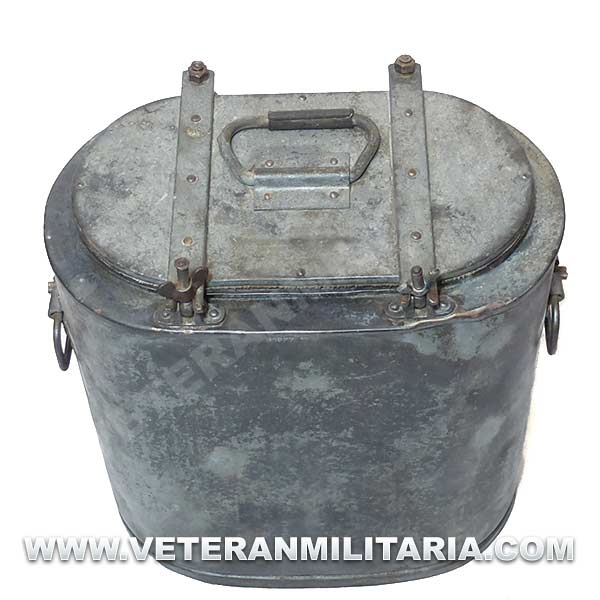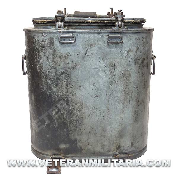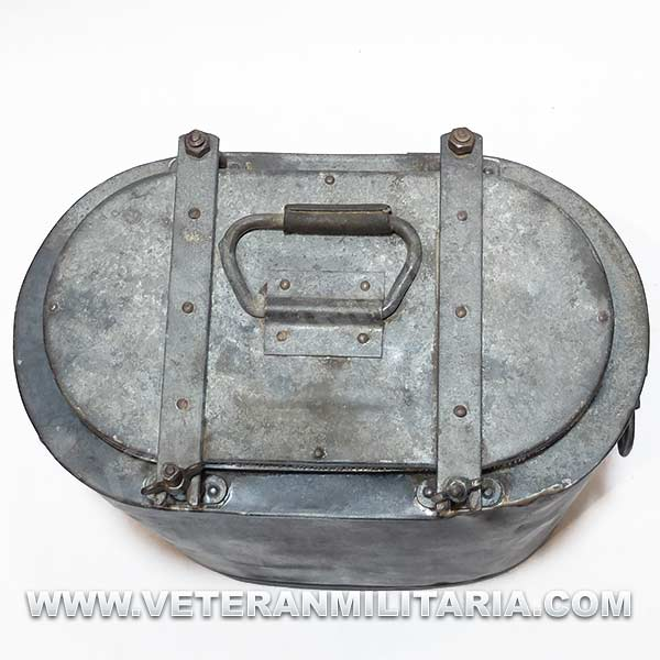 Contenedor de transporte de alimentos de la Wehrmacht de principios de guerra, marcajes 1937 y el sello Waffenamt, usado para la entrega de alimentos a las unidades de primera línea.