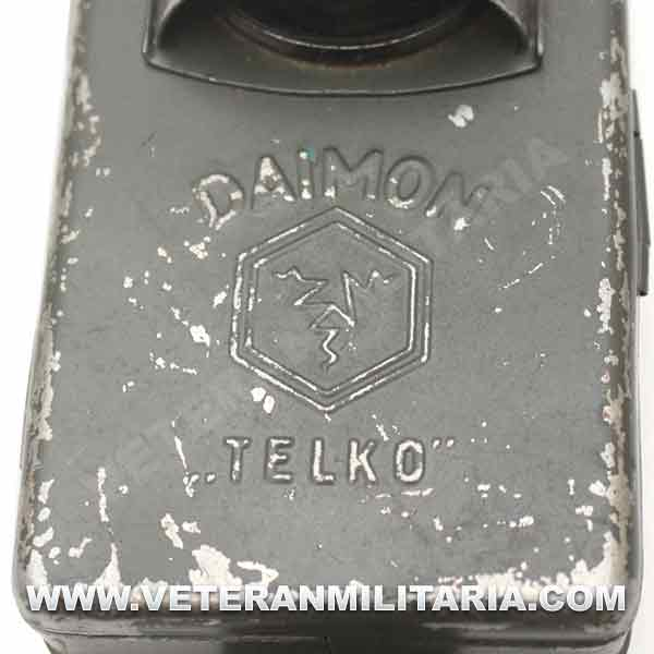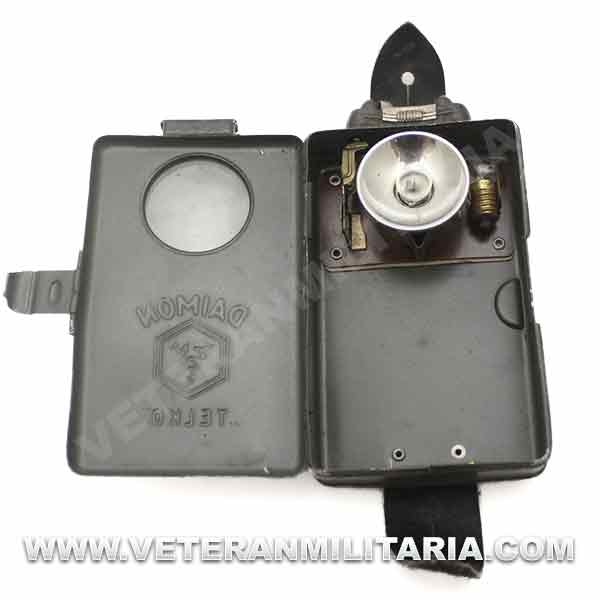 Linterna alemana DAIMON / TELKO, el cuero de las correas en buen estado, en el interior bombilla de recambio, linterna funciona perfectamente.
